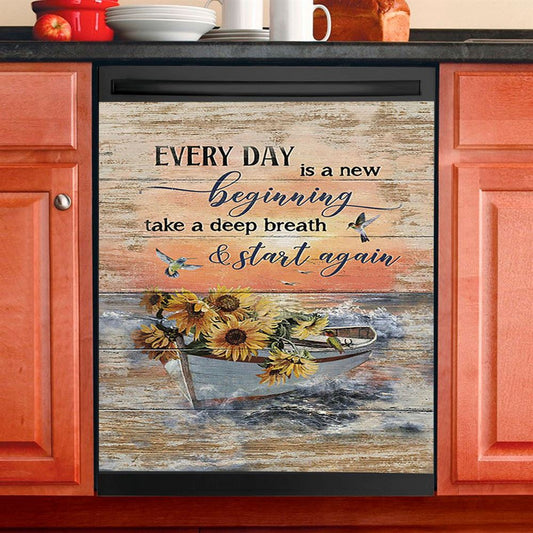 Every Day Is A New Beginning Boat Drawing Sunflower Vase Dishwasher Cover, Christian Dishwasher Magnet Cover, Religious Home Decor