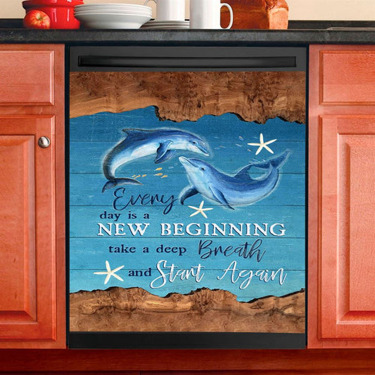 Every Day Is A New Beginning Dolphin Dishwasher Cover, Christian Dishwasher Magnet Cover, Religious Kitchen Decor