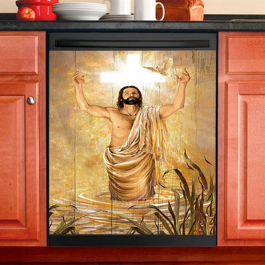 Baptism Of Jesus Dove Dishwasher Cover, Bible Verse Dishwasher Magnet Cover, Christian Inspirational Kitchen Decor