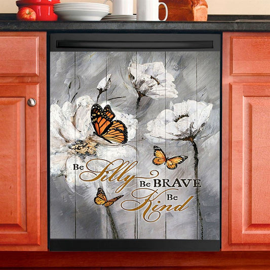 Be Silly Be Brave Be Kind Monarch Butterfly White Flower Dishwasher Cover, Bible Verse Dishwasher Magnet Cover, Christian Inspirational Kitchen Decor