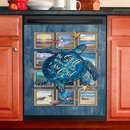 Be Still And Know That I Am God Blue Sea Turtle Starfish Dishwasher Cover, Bible Verse Dishwasher Magnet Cover, Inspirational Kitchen Decor