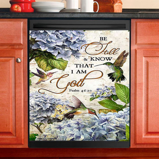 Be Still & Know That I Am God Blue Hydrangea Hummingbird Dishwasher Cover, Bible Verse Dishwasher Magnet Cover, Christian Home Decor