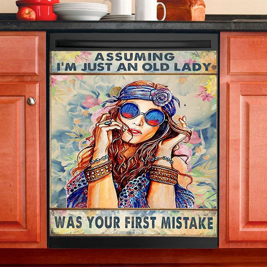 Assuming I'M Just An Old Lady Dishwasher Cover, Hippie Bohemian Dishwasher Magnet Cover, Boho Kitchen Decor