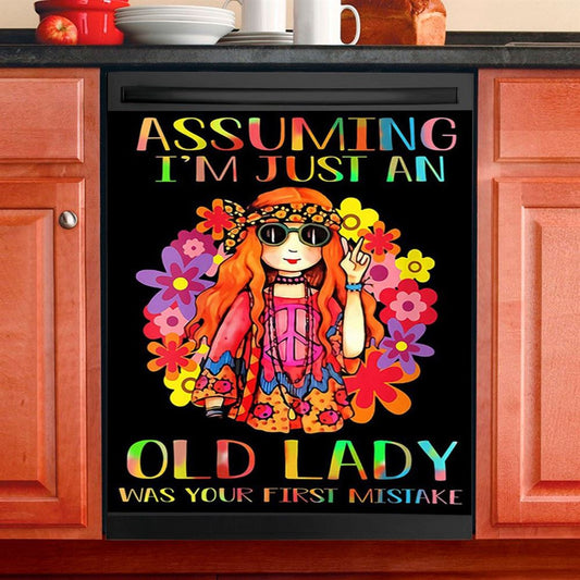 Assuming I'M Just An Old Lady Dishwasher Cover, Hippie Dishwasher Magnet Cover, Pshycadellic Kitchen Decor
