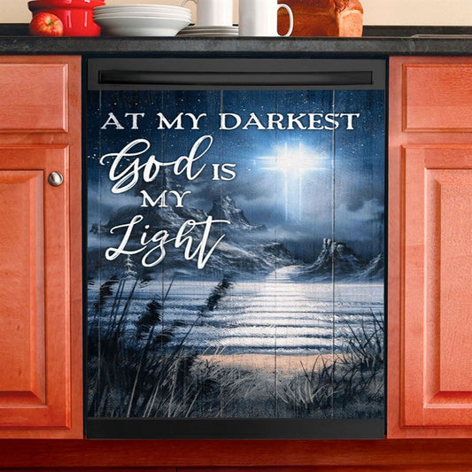 At My Darkest God Is My Light Dishwasher Cover, Christian Dishwasher Magnet Cover, Religious Kitchen Decor