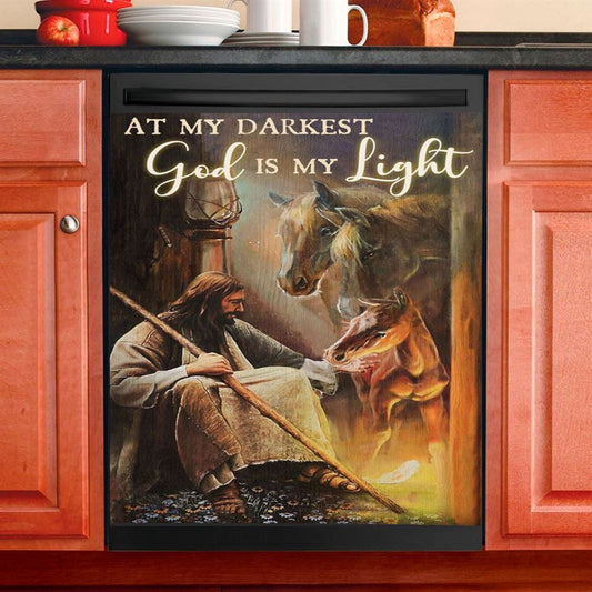At My Darkest God Is My Light Dishwasher Cover, Jesus And Horse Family Dishwasher Magnet Cover, Christian Kitchen Decor