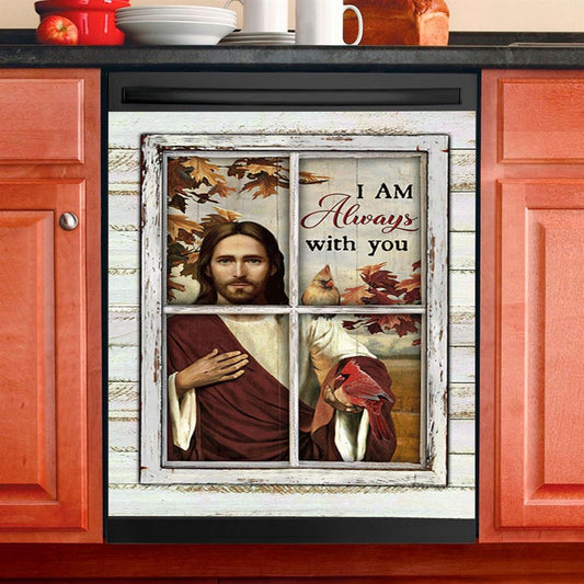 Autumn Season Cardinals Dishwasher Cover, I Am Always With You Dishwasher Magnet Cover, Christian Kitchen Decor