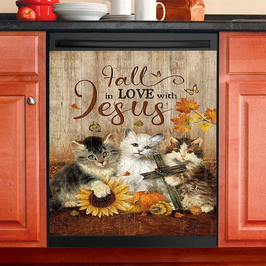 Autumn Season Cute Kittens Pumpkin Cat Painting Dishwasher Cover, Fall In Love With Jesus Dishwasher Magnet Cover, Christian Kitchen Decor