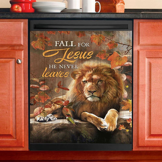 Autumn Season Lion Of Judah Autumn Leaves Fall For He Never Leaves Dishwasher Cover, Christian Dishwasher Magnet Cover