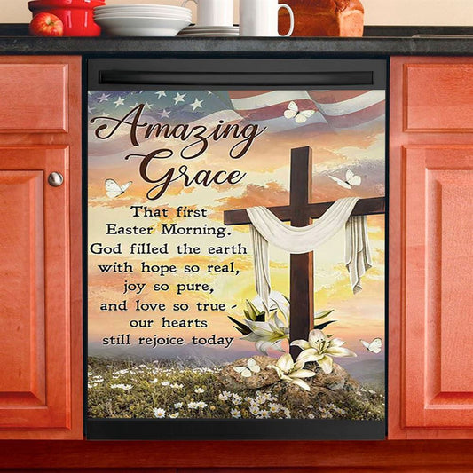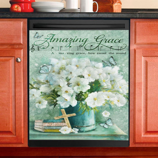 Amazing Grace Flower Cross Book Butterfly Dishwasher Cover, Christian Dishwasher Magnet Cover, Religious Kitchen Decor