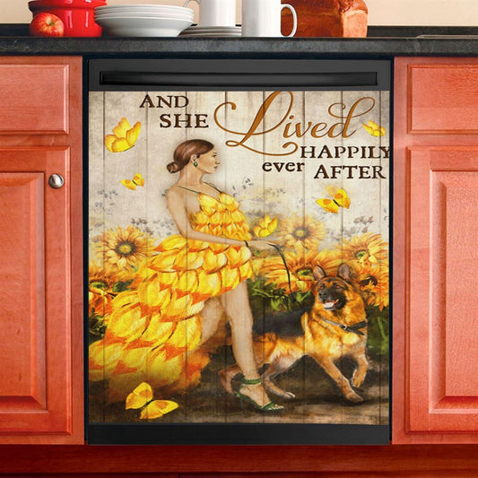 And She Lived Happily Ever After Beautiful Girl German Shepherd Dishwasher Cover, Christian Dishwasher Magnet Cover, Religious Kitchen Decor