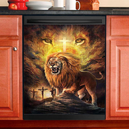 Angry Lion Of Judah Jesus On The Cross Dishwasher Cover, Christian Dishwasher Magnet Cover, Bible Verse Kitchen Decor