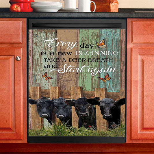 Angus Cow Everyday Is A New Beginning Dishwasher Cover, Christian Dishwasher Magnet Cover, Bible Verse Kitchen Decor