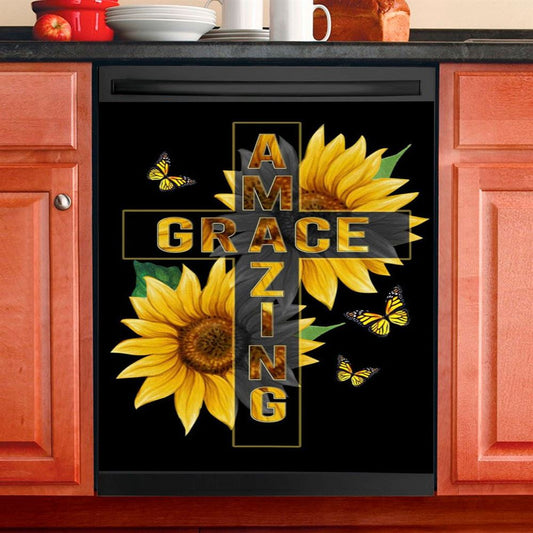 Amazing Grace Sunflower Dishwasher Cover, Bible Verse Dishwasher Magnet Cover, Scripture Kitchen Decor