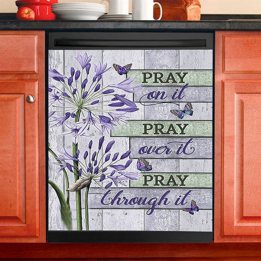 Pray On It Pray Over It Pray Through It Dishwasher Cover, Agapanthus Africanus Purple Butterfly Dishwasher Wrap, Christian Kitchen Decoration
