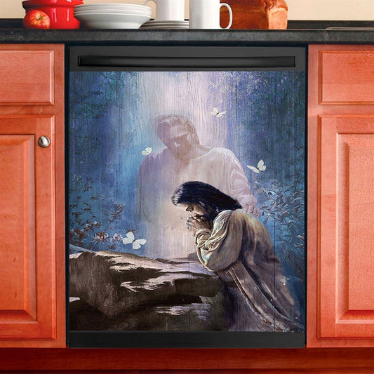 Pray And Believe Jesus Christ Dishwasher Cover, Jesus Dishwasher Wrap, Christian Kitchen Decoration