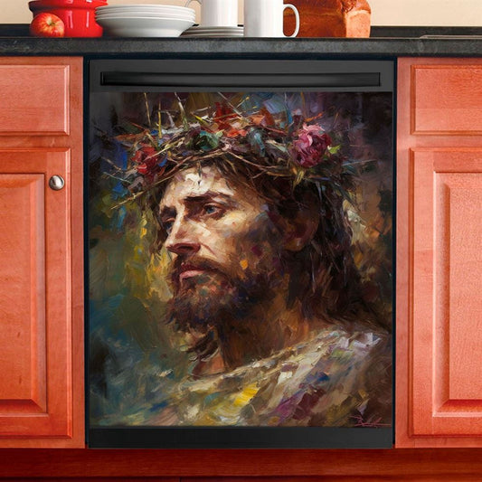 Portrait Of Jesus With The Crown Of Thorn Dishwasher Cover, Jesus Dishwasher Wrap, Christian Kitchen Decoration