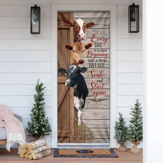 Funny Cows Everyday Is A New Beginning Door Cover For Christmas Day, Christmas Door Knob Covers, Christmas Outdoor Decoration
