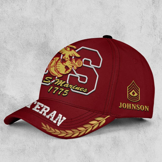 Marine Corps Veteran Cap, Customized Us Marines Insignias Rank Embroidered Cap, Embroidered Dad Hat