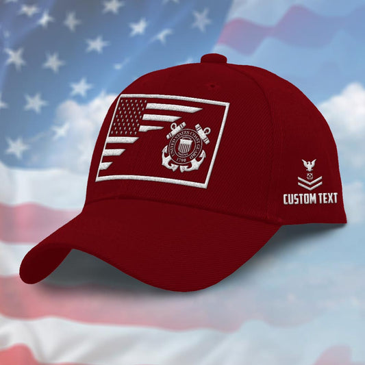 Coast Guard Veteran Cap, Customized Us Coast Guard Flag Red Embroidered Cap, Embroidered Dad Hat