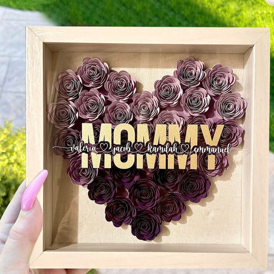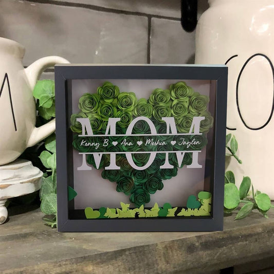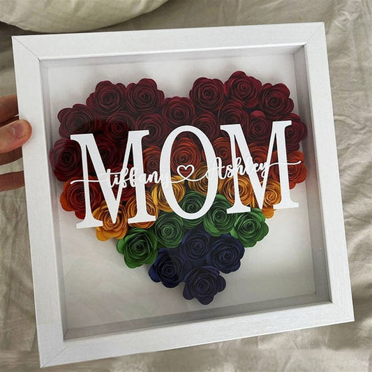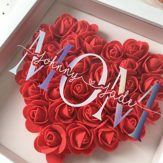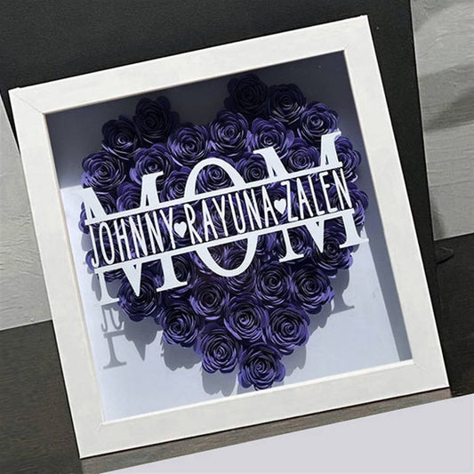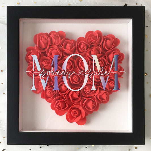 Mother's Day Flower Shadow Box, Personalized Mom Rose Heart Flower Shadow Box With Name