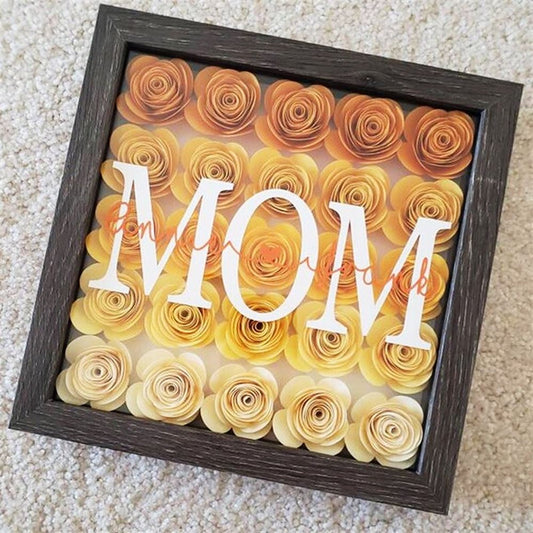 Mother's Day Flower Shadow Box, Personalized Mom Ombre DarkOrange Flower Shadow Box With Kids Name For Mother's Day Birthday