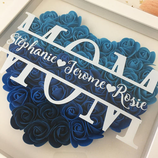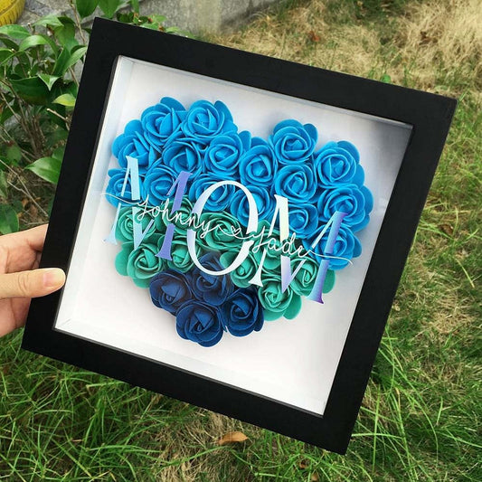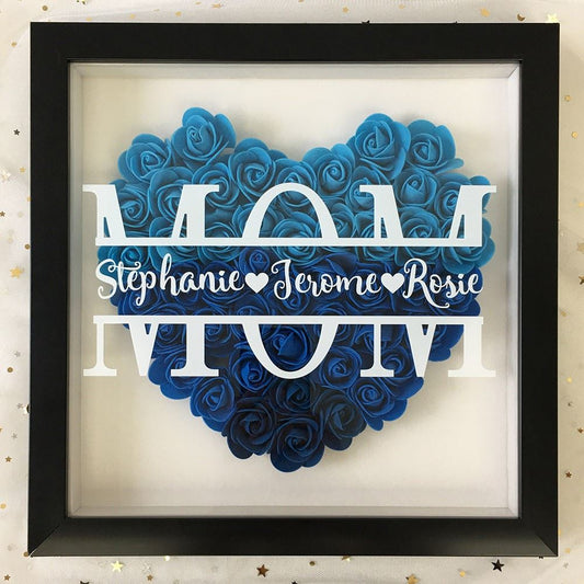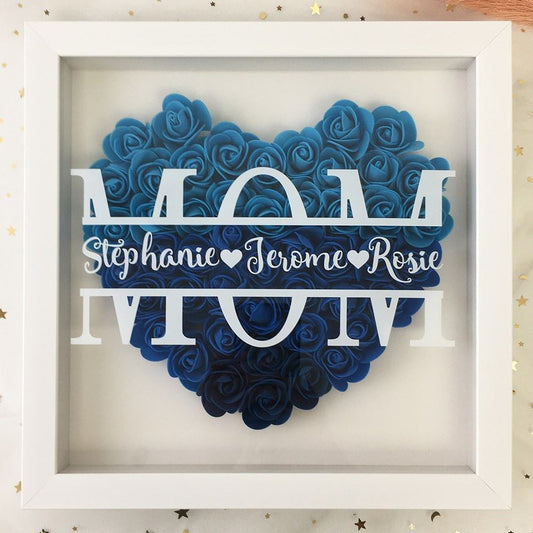 Mother's Day Flower Shadow Box, Personalized Mom Ombre MediumBlue Heart Flower Shadow Box With Name For Mother's Day