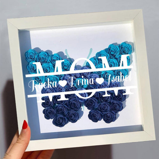 Mother's Day Flower Shadow Box, Personalized Mom Ombre Navy Butterfly Shadow Box With Kids Name For Grandma Mother's Day Gift