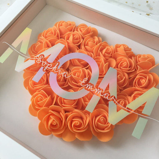 Mother's Day Flower Shadow Box, Personalized Mom Orange Heart Flower Shadow Box With Name For Mother's Day