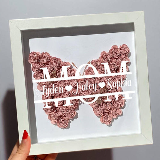 Mother's Day Flower Shadow Box, Personalized Mom Pink Mix Butterfly Shadow Box With Kids Name For Grandma Mother's Day Gift