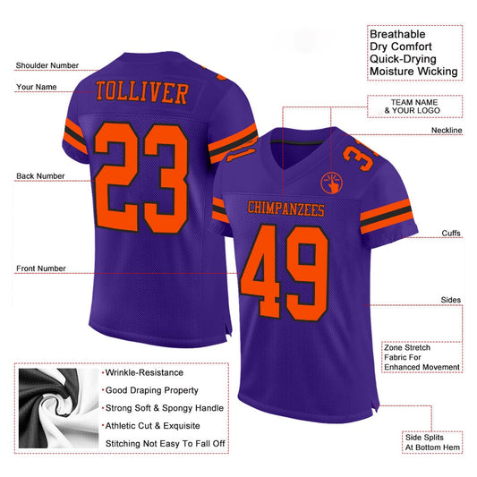 Custom Purple Orange Black Mesh Authentic Football Jersey, Team Jerseys Football, Custom Football Jersey