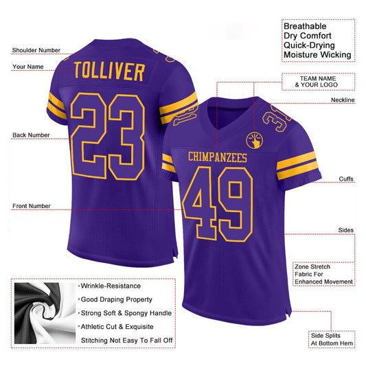 Custom Purple Purple Gold Mesh Authentic Football Jersey, Team Jerseys Football, Custom Football Jersey