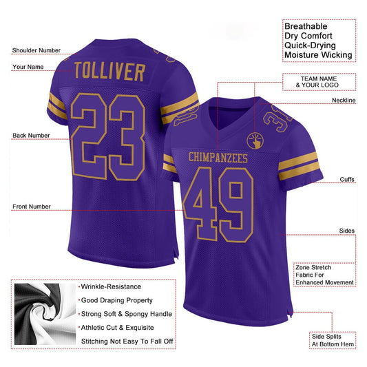 Custom Purple Purple Old Gold Mesh Authentic Football Jersey, Team Jerseys Football, Custom Football Jersey