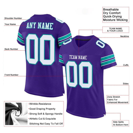 Custom Purple White Aqua Mesh Authentic Football Jersey, Team Jerseys Football, Custom Football Jersey