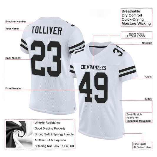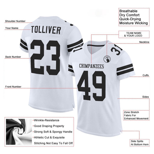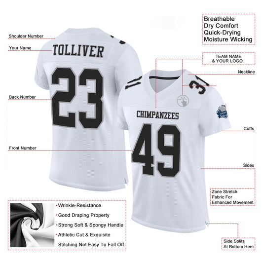 Custom White Black Mesh Authentic Football Jersey, Team Jerseys Football, Custom Football Jersey