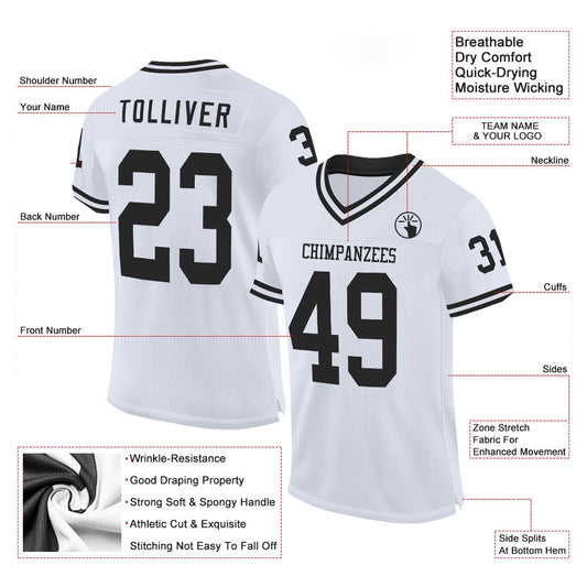 Custom White Black Mesh Authentic Throwback Football Jersey, Team Jerseys Football, Custom Football Jersey