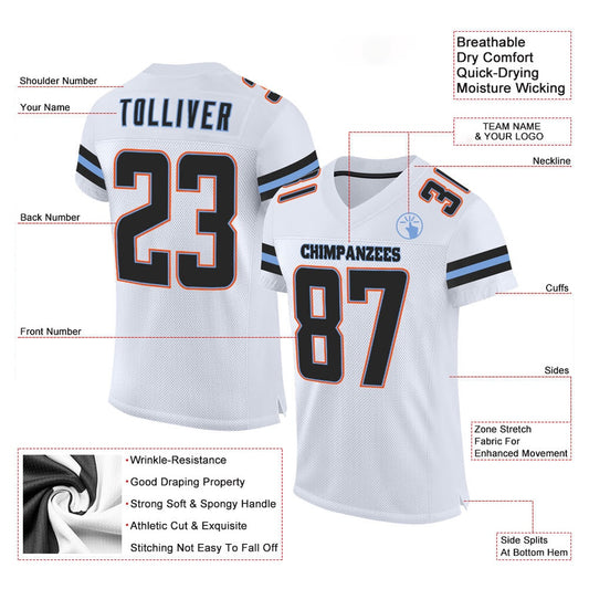 Custom White Black Orange Mesh Authentic Football Jersey, Team Jerseys Football, Custom Football Jersey