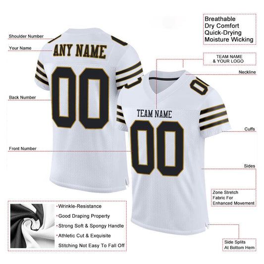 Custom White Black Gold Mesh Authentic Throwback Football Jersey, Team Jerseys Football, Custom Football Jersey