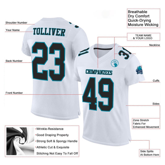 Custom White Black Teal Mesh Authentic Football Jersey, Team Jerseys Football, Custom Football Jersey