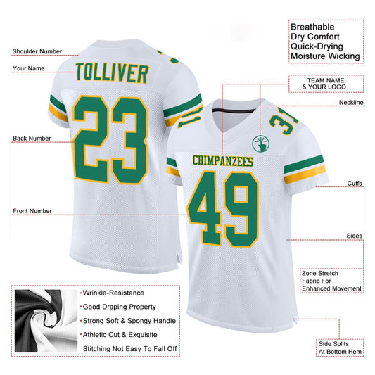 Custom White Kelly Green Gold Mesh Authentic Football Jersey, Team Jerseys Football, Custom Football Jersey