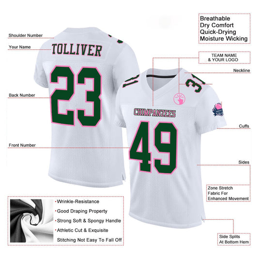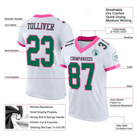 Custom White Kelly Green Pink Mesh Authentic Football Jersey, Team Jerseys Football, Custom Football Jersey