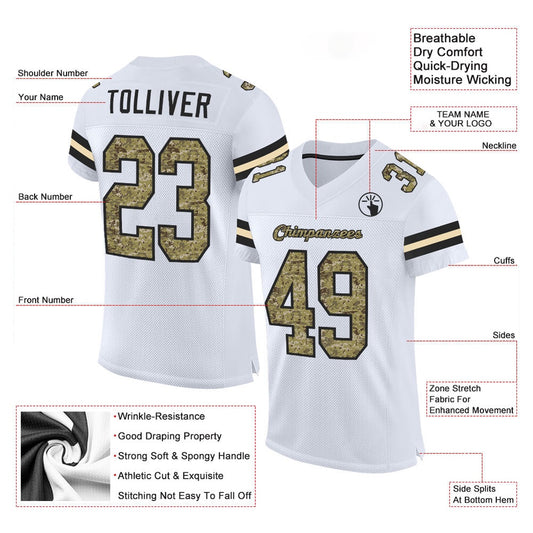 Custom White Camo Black Mesh Authentic Football Jersey, Team Jerseys Football, Custom Football Jersey
