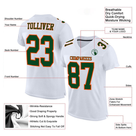 Custom White Green Orange Mesh Authentic Football Jersey, Team Jerseys Football, Custom Football Jersey