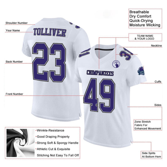 Custom White Purple Gray Black Mesh Authentic Football Jersey, Team Jerseys Football, Custom Football Jersey