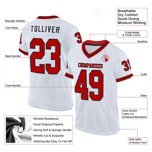 Custom White Red Black Mesh Authentic Throwback Football Jersey, Team Jerseys Football, Custom Football Jersey