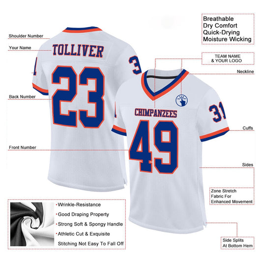 Custom White Royal Orange Mesh Authentic Throwback Football Jersey, Team Jerseys Football, Custom Football Jersey