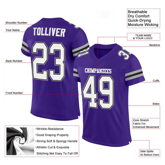 Custom Purple White Gray Mesh Authentic Football Jersey, Team Jerseys Football, Custom Football Jersey