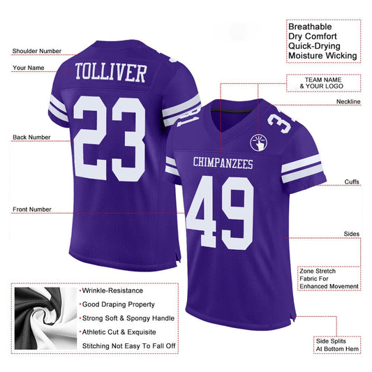Custom Purple White Mesh Authentic Football Jersey, Team Jerseys Football, Custom Football Jersey