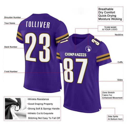 Custom Purple White Old Gold Mesh Authentic Football Jersey, Team Jerseys Football, Custom Football Jersey