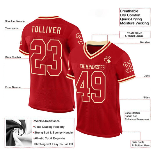 Custom Red Cream Mesh Authentic Throwback Football Jersey, Team Jerseys Football, Custom Football Jersey